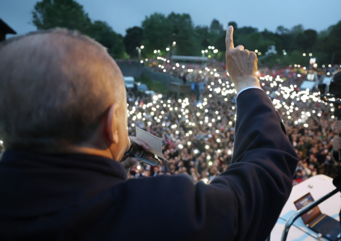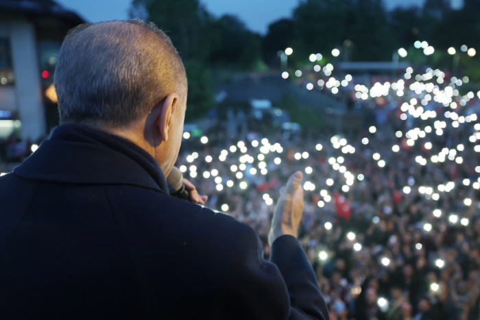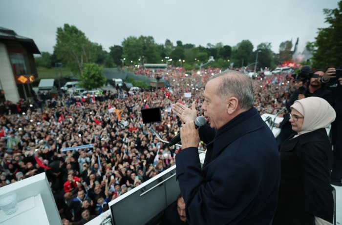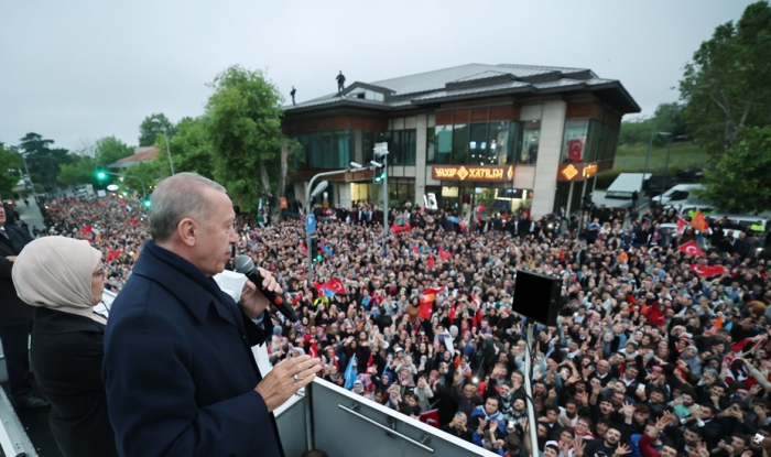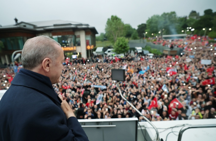Yurt içinde, yurt dışında ikinci tura göre özellikle yüksek oy oranlarıyla sandığa koşan herkese teşekkür eden Cumhurbaşkanı Erdoğan, sözlerini şöyle sürdürdü: "Yaptığı tercihle önümüzdeki 5 yıl boyunca ülkeyi yönetme sorumluluğunu bir kez daha bize tevdi eden milletimizin her bir ferdine teşekkür ediyorum. İnşallah sizlerin güvenine layık olacağız. 21 yıl layık olduğumuz gibi layık olacağız. Ne dedim; 'Pazara kadar değil, mezara kadar beraber olacağız' Hep 'Bu sevda burada bitmez' dedik. Öyle mi? Şimdi bak 'bay bay Kemal' diyorlar. Biz hep 'Bu kutlu yürüyüş yarım kalmaz' demiştik. Biz hep 'Hizmet eden hezimete uğramaz' demiştik. Biz hep 'Türkiye bize, biz de Türkiye'ye emanetiz' demiştik. İsterseniz buna bir üçüncü 'bay' daha ilave edebiliriz; bay bay Bay Kemal."