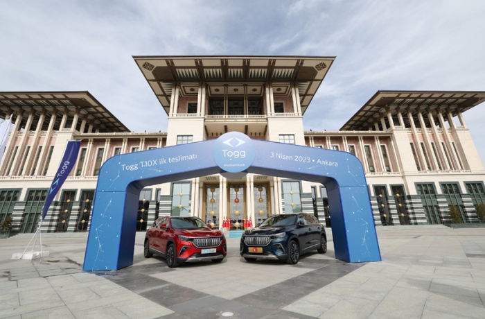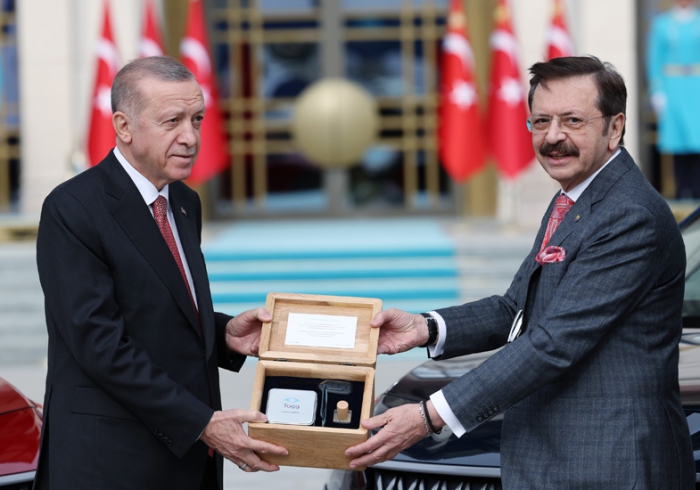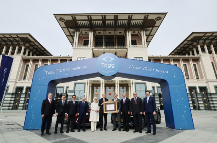 Sanayi ve Teknoloji Bakanı Mustafa Varank ile Togg'un ortağı "babayiğitler", Cumhurbaşkanı Erdoğan ve eşi Emine Erdoğan'a hayırlı olsun dileklerini iletti. Cumhurbaşkanı Erdoğan ve eşi Emine Erdoğan'a içinde araçlara ait anahtar ve ruhsat ile kolonya ve kestane şekerinin yer aldığı kitler teslim edildi.