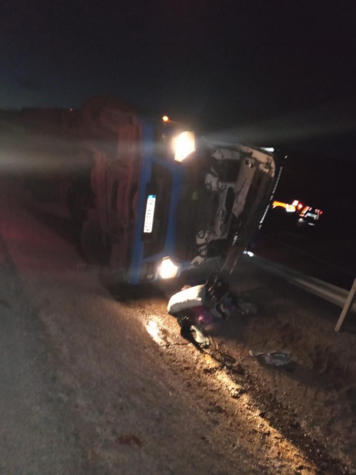 Alınan bilgiye göre, dün gece saat 03.30 sularında Erzurum'dan Aşkale istikametine seyir eden 36 AAE 028 plakalı kamyon, Çayköy mevkiinde sürücünün direksiyon hakimiyetini kaybetmesi sonucu refüjde yan yattı. Diğer sürücülerin ihbarı üzerine olay yerine sağlık, trafik ve itfaiye ekipleri geldi. İlçe trafik ekipleri yol emniyetini sağlarken, Erzurum Büyükşehir Belediyesi Aşkale itfaiye ekipleri araçta sıkışan sürücü ve yolcuyu uzun uğraşlar sonucunda araçtan çıkardı. Kazada Eren Çam'ın hayatını kaybettiği belirlenirken, Şahin Yıldırım ise ağır yaralı olarak hastaneye kaldırıldı.