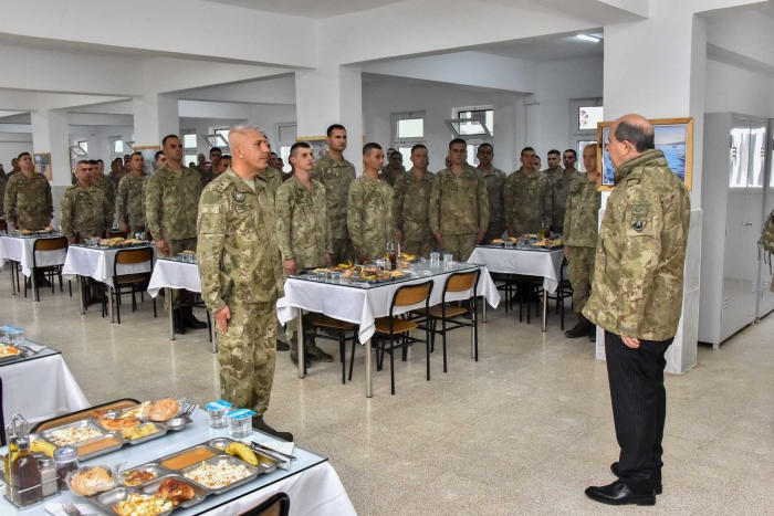 Birliklerimizin tertip ve düzeninden dolayı Komutanları tebrik eden Cumhurbaşkanı Sn. Ersin Tatar, Mehmetçiklerimizle yemek yiyerek Türk Silahlı Kuvvetlerinin Ada’daki varlığından duydukları memnuniyeti ifade eden bir konuşma yaptı.