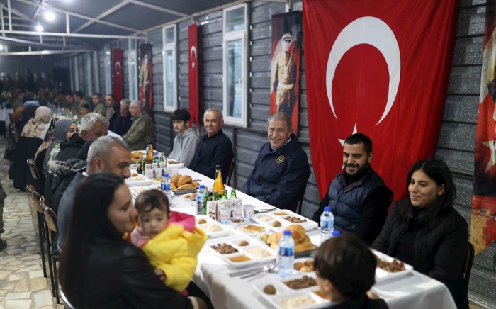 Ramazan ayının ilk iftarını Hatay'da Mehmetçik ile yapan Bakan Akar dün de Serinyol'daki 8'inci Komando Tugay Komutanlığında şehit aileleri ve gazilerle iftarda bir araya geldi.