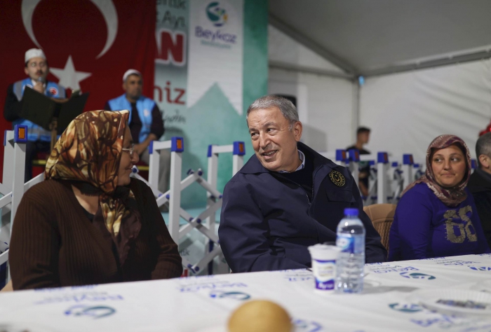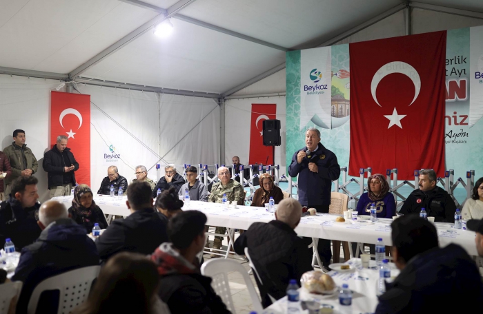 Ramazan ayının ilk iftarını Hatay'da Mehmetçik ile yapan Bakan Akar dün de Kırıkhan ilçesinde Beykoz Belediyesince düzenlenen iftarda depremzedelerle bir araya geldi.