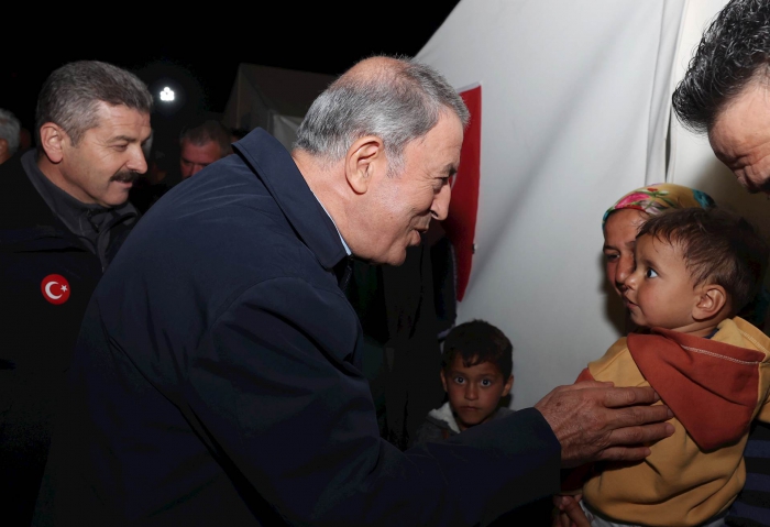 Mehmetçiğin depremle mücadelenin yanı sıra hudut güvenliği ve terörle mücadele dâhil tüm çalışmalarını aksaksız, eksiksiz yerine getirmeye devam ettiğini vurgulayan Bakan Akar, "Karada, denizde, havada hak ve menfaatlerimizi korumak, kollamak için bütün unsurlarımız gece gündüz demeden çalışmalarını sürdürüyor." diye konuştu.