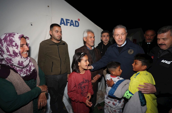 Tüm bu süreçte devletin milleti ile beraber olduğunu aktaran Bakan Akar, "Depremzedelere yardımcı olmak, onların acılarını dindirmek, yaralarını sarmak için devlet ve millet olarak ilk andan itibaren çalışmalarımız devam ediyor. Nasıl geçmişte felaketlerin üstesinden geldiysek inşallah bu depremin yaralarını da saracak, bu felaketin de üstesinden geleceğiz." ifadelerini kullandı.