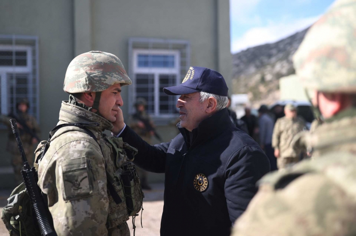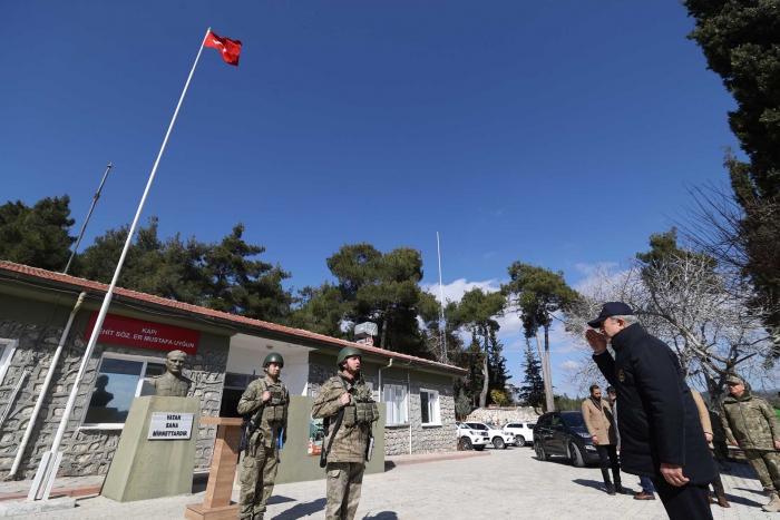 Bakan Akar daha sonra Şehit Sözleşmeli Er Mustafa Uygun Hudut Karakoluna geçerek inceleme ve denetlemelerde bulundu.
