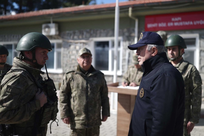 Millî Savunma Bakanı Akar da beraberinde Genelkurmay Başkanı Orgeneral Yaşar Güler ile sınır hattında karadan ve havadan incelemelerde bulundu, sınırın sıfır noktasındaki hudut karakollarında denetlemelerde bulundu.