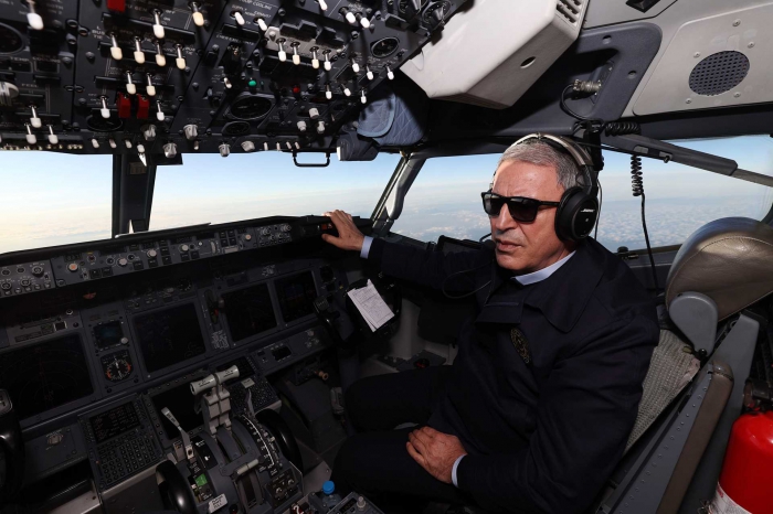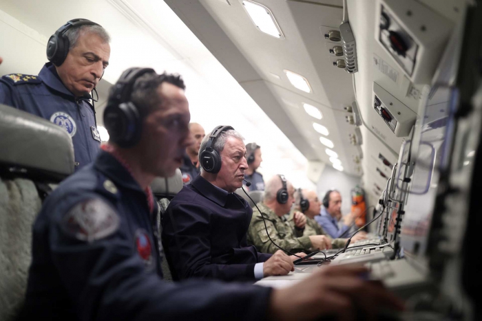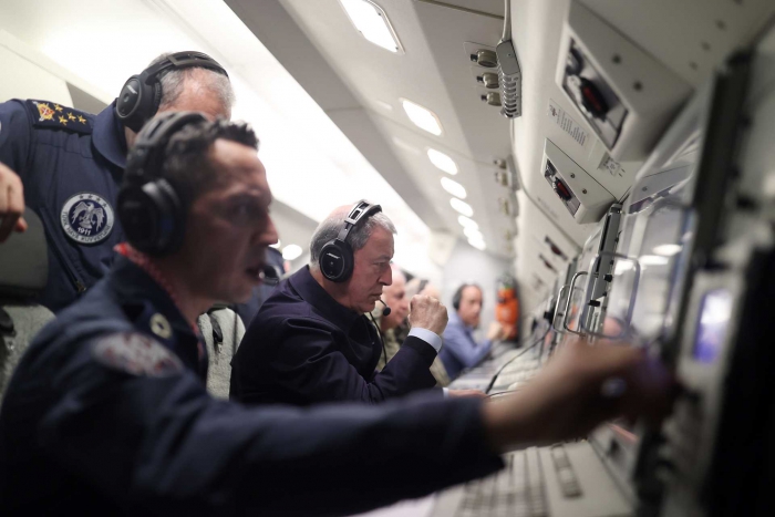 "Türkiye'nin göklerdeki gözü" olarak nitelendirilen HİK uçağıyla yapılan ve yaklaşık 3 saat süren görev uçuşunda Bakan Akar, beraberindeki TSK Komuta Kademesi ile Ege ve Doğu Akdeniz’de seyir hâlindeki gemilerin komutanları, havadaki uçakların pilotları ve bazı kara unsurlarıyla telsizle görüşerek bilgi aldı, yeni yıllarını kutladı.