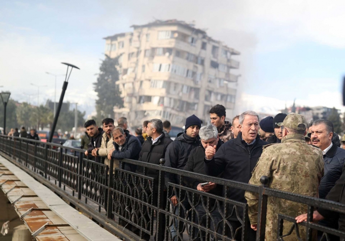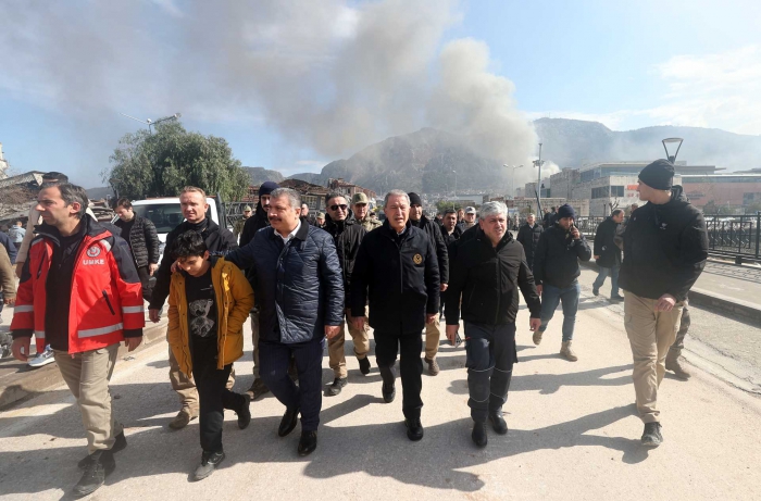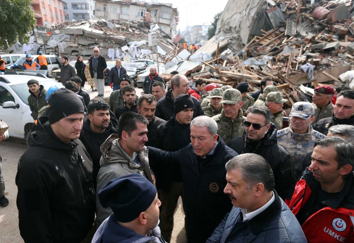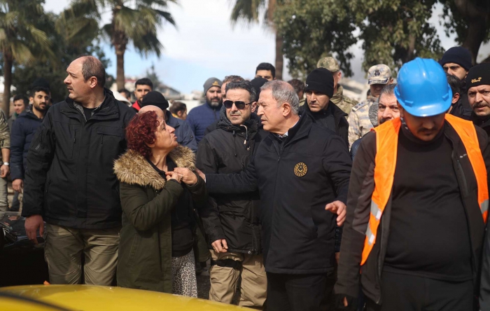 Depremin hemen ardından beraberindeki Genelkurmay Başkanı Orgeneral Yaşar Güler ve Kara Kuvvetleri Komutanı Orgeneral Musa Avsever ile Hatay’a gelen Millî Savunma Bakanı Hulusi Akar, burada Sağlık Bakanı Fahrettin Koca ile arama-kurtarma çalışmalarını yerinde takip ediyor.