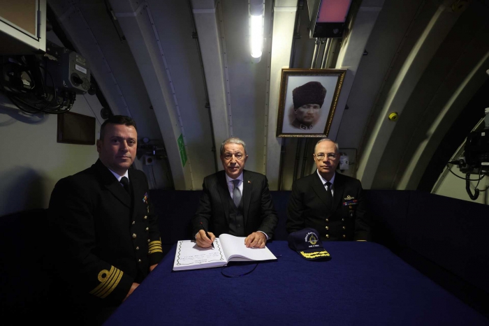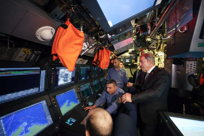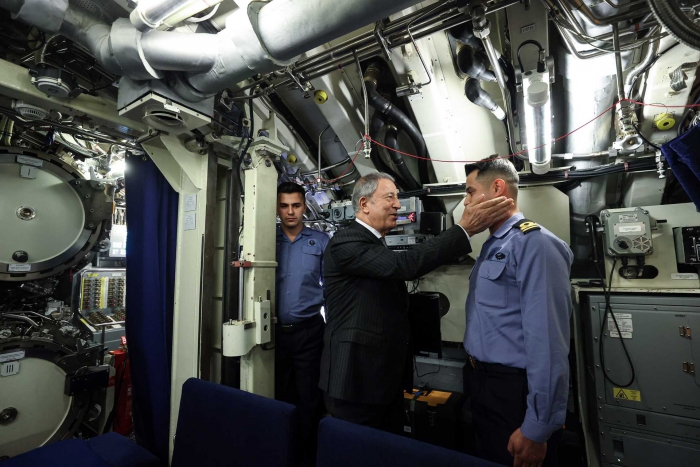 İnceleme ve denetlemeleri sırasında "sessiz ve derinden" parolasıyla görev yapan Denizaltı Filosu Komutanlığına da giden Akar, Yeni Tip Denizaltı Projesi kapsamında yapımı devam eden “Reis” sınıfı denizaltılardan PİRİREİS'te incelemelerde bulundu.