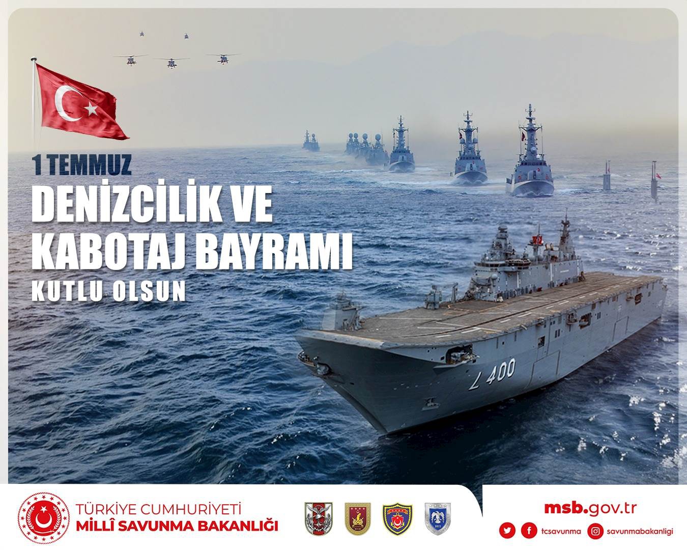 1 Temmuz Denizcilik ve Kabotaj Bayramı kutlu olsun! Her daim görevinin başında olan Türk Silahlı Kuvvetlerimiz, Mavi Vatan’da da hak, alaka ve menfaatlerimizi korumaya, şanlı Al Bayrağımızı dalgalandırmaya devam ediyor.