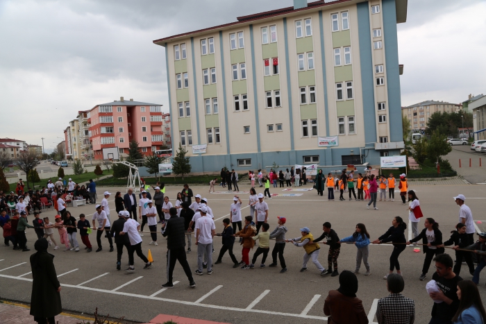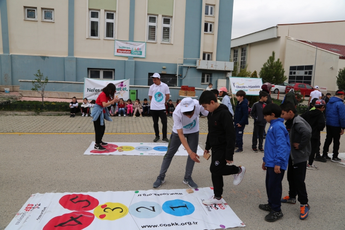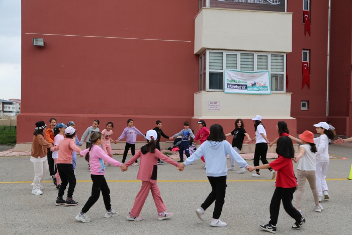 Teknolojinin verimli ve akılcı kullanılmaması, daha çok sosyal medya, oyun oynama ve video amacıyla kullanılmasının en kötü sonuçlarından biri de, ne yazık ki, fiziksel inaktivitedir. Mayıs ayı içerisinde hem Bilişim Haftası’nın hem de 10 Mayıs Dünya Sağlık İçin Hareket Et Günü’nün bir arada olmasından yola çıkılarak İl Sağlık Müdürlüğü ve Erzurum Recep KARABACAK Spor Lisesi işbirliğinde çocuk oyunları etkinliği gerçekleştirildi. Etkinlikte lise öğrencileri tarafından Ertuğrul Gazi İlkokulu 3.ve 4. Sınıf öğrencilerine ip atlama, topaç çevirme, halat çekme, mendil kapmaca, futbol, yakar top vb. çocuk oyunları oynatıldı. İl Sağlık Müdürlüğü Halk Sağlığı Hizmetleri Başkan Yardımcısı Uz. Dr. E. Füsun KARAŞAHİN tarafından öğrencilere teknolojinin bilinçli kullanımı, fiziksel aktivitenin artırılması ve aile büyüklerinin de gerçekleştirilen fiziksel aktiviteye katılımının teşvik edilmesi mesajlarının verildiği etkinlikte “Sağlık İçin Hareket Et, Her Gün 10 Bin Adım” sloganı içeren tişört ve şapka dağıtımı yapıldı. Hem öğrenciler hem de oyunlara katılan yetişkinlerin çok güzel zamanlar geçirdiği etkinlikte sağlık günlüğüm defteri, kalem ve not defterini içeren çantalar çocuklara dağıtıldı.