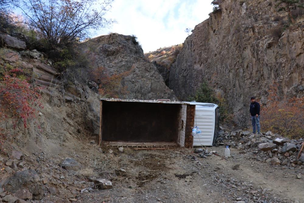 Mahalle muhtarı Halil İbrahim Yücel, hayvanlarını getirirken rampada araba çıkmayınca geri kaçan pikap devrildi, hayvanlarda sıyrıklar oluşurken sürücü Halil İbrahim Yücel kazadan yara almadan kurtardı.