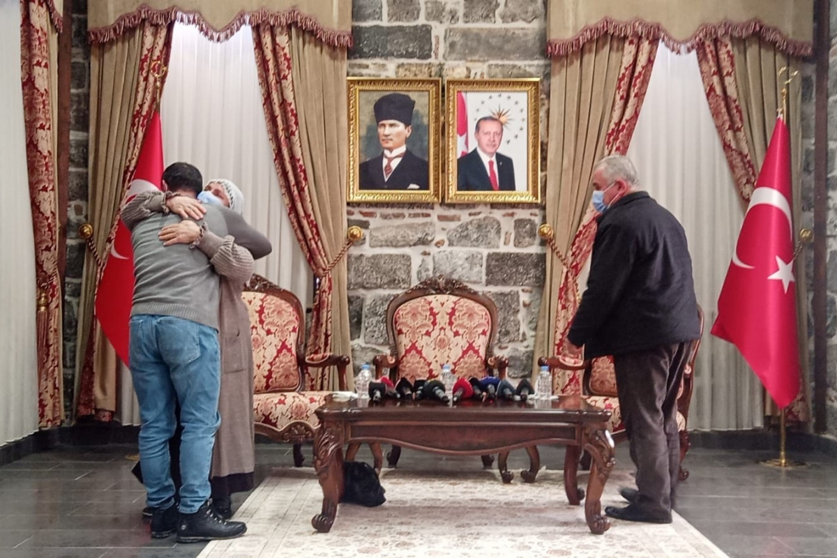 Çocuklarının terör örgütü PKK tarafından zorla dağa kaçırıldığı iddiasıyla HDP Diyarbakır il binası önünde 874 gündür evlatları için nöbette olan bir aile daha evladına kavuştu.