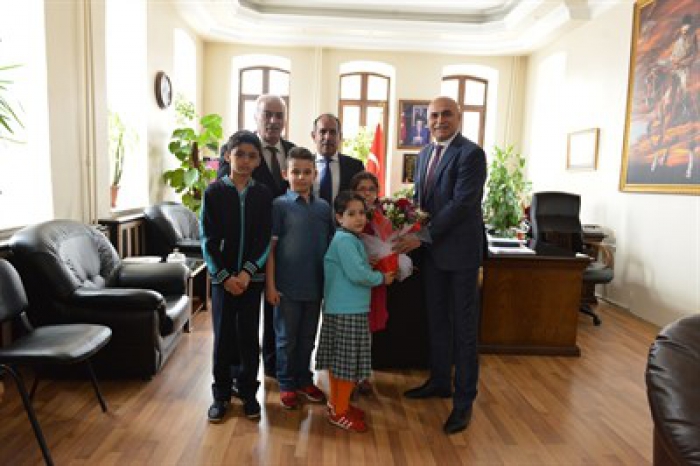Başkan Korkut, 23 Nisan Ulusal Egemenlik ve Çocuk Bayramı nedeniyle İMKB İlköğretim Okulu Müdürü Zeki Doğan, öğretmen Hamza Bedir, 4. Sınıf öğrencilerinden Elif Berrak Demir, Onur Ölçü, Efe Gültekin ve 1. Sınıf öğrencisi Zeynep Korkut’u ağırladı. Ziyaret sırasında 4. Sınıf öğrencisi Elif Berrak Demir Korkut’un koltuğuna oturarak, temsilen Yakutiye Belediye Başkanı oldu. Korkut’un herhangi bir plan ve projesinin olup olmadığını sorması üzerine, küçük başkan ilçedeki yeşil alanların arttırılması, ailecek gezilecek ve yürüyüş yapılacak yeşil alanlar ve araç park sorununu ortadan kaldıracak projeler yapacağını söyledi. Küçük başkanın projelerini söylemesi üzerine Belediye Başkanı Ali Korkut ilçemiz için doğru tespitlerde bulundu diyerek cevap verdi.