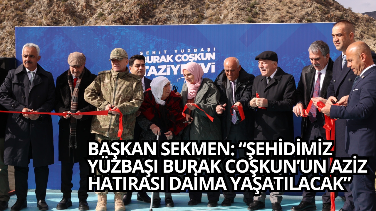 Erzurum Büyükşehir Belediye Başkanı Mehmet Sekmen de, “Şehitlerimiz, bu milletin canı, ruhu, namusu, en kıymetli emanetleridir. Onların fedakârlıkları sayesinde bizler, huzur ve güven içerisinde, bu topraklar üzerinde varlığımızı sürdürüyoruz” dedi. “Her bir şehidimiz, ülkemizin bağımsızlığı, bayrağımızın onuru ve geleceğimiz için adını tarihe altın harflerle kazımış birer kahramandır. Şehit Yüzbaşı Burak Coşkun’un hatırasını yaşatacak olan bu taziye evi, hem acılarımızı paylaşacağımız bir yuva olacak hem de milletimizin kadirşinaslığını, şehitlerimize olan vefamızı her zaman hatırlatacak bir mekân olarak anlam kazanacaktır” diyen Başkan Sekmen, şöyle devam etti: “Bu taziye evimizin kapıları, hemşehrilerimizin bir araya gelerek acılarını paylaştığı, birbirine destek olduğu, dostluk ve kardeşlik duygularını pekiştirdiği bir yuva olacaktır. Birlik ve beraberlik içerisinde, dayanışma ruhunu en güçlü şekilde yaşatarak, şehitlerimizin bıraktığı mirasa sahip çıkmaya devam edeceğiz. Erzurum, her zaman vatanseverliği, cesareti ve dayanışma ruhuyla tanınan bir şehir olmuştur. Bugün açılışını yapacağımız bu taziye evi, Erzurum’un bu kadirşinas ve vatanperver duruşunu bir kez daha gözler önüne seriyor. Kur’an-ı Kerim’in şu ayeti bizlere, çalışmanın, gayret etmenin ne kadar önemli olduğunu hatırlatıyor: “İnsan için ancak çalıştığının karşılığı vardır” (Necm Suresi, 39). Bizler de Erzurum’umuzu güzelleştirmek, hemşehrilerimize daha yaşanabilir bir şehir sunmak için gece gündüz demeden çalışıyoruz. Şehitlerimizin aziz hatırasına yakışır eserler bırakmak, bu şehirde huzur ve kardeşliği daim kılmak için var gücümüzle emek veriyoruz. Şehit Yüzbaşı Burak Coşkun Taziye Evi de bu inançla, bu azimle ve şehitlerimize olan derin saygımızla hayata geçirildi. Erzurum’un her köşesinde, şehitlerimizin isimlerini yaşatmaya, onlara layık olmaya çalışıyoruz. Bugün burada, kıymetli hemşehrimiz Korgeneral Zekai Aksakallı Paşa’mızın da katılımıyla bu anlamlı açılışı gerçekleştiriyoruz. Zekai Paşamız, ömrünü vatan savunmasına adamış bir kahraman olarak her zaman bizim gururumuz olmuştur. Şehidimizin ve tüm kahramanlarımızın hatırasını yaşatmak, bu vatanı korumak ve yüceltmek adına hep birlikte omuz omuza mücadeleye devam edeceğiz. Şehitlerimizin manevi mirası, bizlere ilham veren en büyük güçtür. Bu vesileyle, şehitlerimizin ruhlarını rahmetle anarken, bu açılışın, birliğimizi, beraberliğimizi daha da pekiştirmesini diliyorum. Rabbim, şehitlerimizin şefaatine nail olmayı, onların bıraktığı mirasa layık olmayı bizlere nasip etsin. Erzurum’un cesur ve vefalı insanları, her zaman olduğu gibi bugün de burada bizlerle. Bu anlamlı günde bizleri yalnız bırakmayan, desteğini esirgemeyen tüm hemşehrilerime yürekten teşekkür ediyorum.” Konuşmaların ardından Şehit Yüzbaşı Burak Coşkun Taziye Evi’nin açılışı yapıldı.