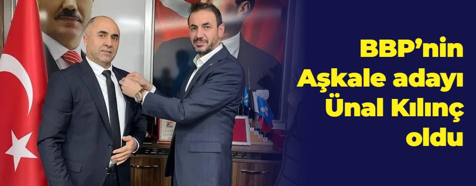 Erzurum’un Aşkale ilçesinde Ünal Kılınç önümüzdeki seçimler için Büyük Birlik Partisi’nden (BBP) aday gösterildi. Kılınç’a parti rozetini, BBP Erzurum İl Başkanı Ahmet Eşref Yılmaz taktı.