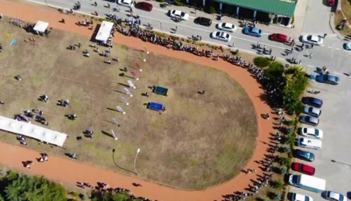 Öğrencilerin köfte yemek için girdiği uzun sıralar drone ile havadan da görüntülenirken, korona virüs tedbirleri de zaman zaman hiçe sayılarak sıralarda sosyal mesafe sıfıra indi.
