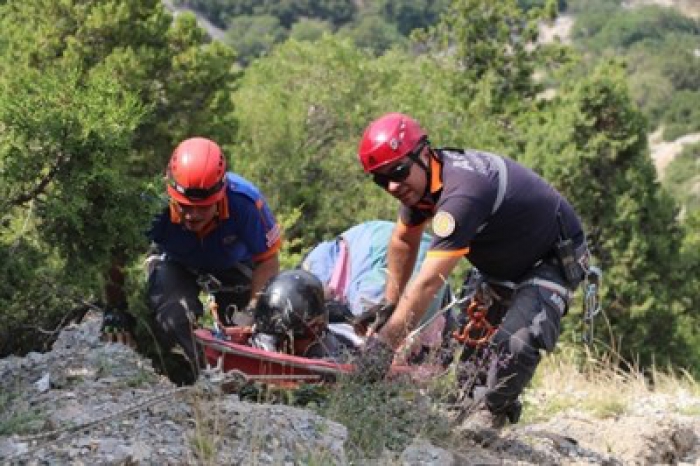 Denizli’de yamaç paraşütü yapan 75 yaşındaki kişi düştüğü kayalıklarda mahsur kaldı.