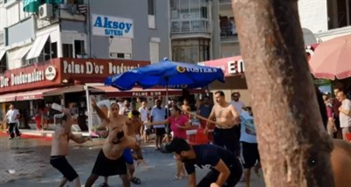 Bursa'nın Gemlik ilçesinde yer meselesi yüzünden çıkan sopalı ve sandalyeli kavga kameralara yansıdı. Polisin biber gazı kullandığı kavgada 7 kişi yaralandı.