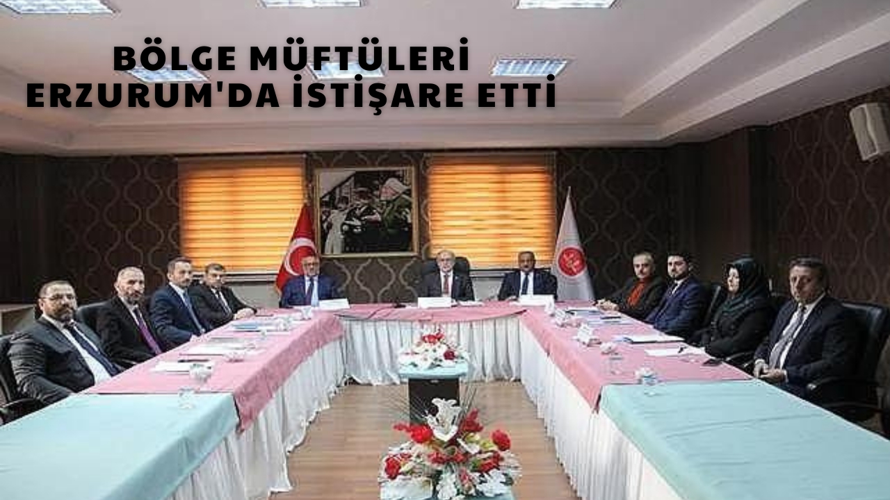 Erzurum Müftüsü Dr. Rüstem Can başkanlığında yapılan toplantı İl Müftülüğü Toplantı Salonu'nda gerçekleştirildi. Toplantıya Iğdır İl Müftüsü Zahit Demirel, Kars İl Müftüsü Hamza Bayram, Ağrı İl Müftüsü Necati Şafak, Ardahan İl Müftüsü Adem Karadeniz, Erzincan İl Müftü Yardımcısı Gökhan Badem, Bayburt İl Müftü Yardımcısı Fatma Tuba Altın, Erzurum İl Müftü Yardımcıları İsmail Yılmaz ve Sebahattin Erdoğan katıldı.