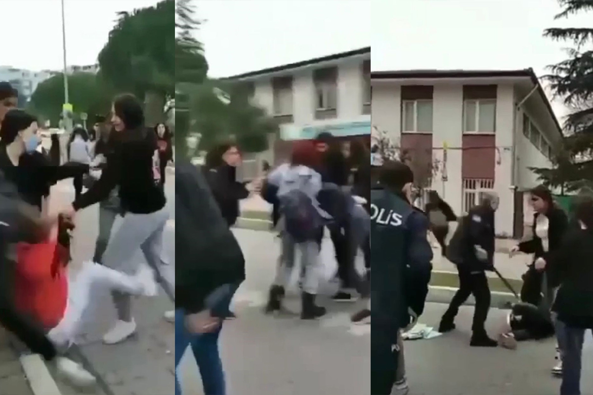 Bursa'da lisede okuyan 20 kişilik kız grubu yan bakma meselesi sebebiyle tartışmaya başladı. Tartışma kısa süre içinde kavgaya dönüştü. Yaklaşık 20 kız birbirlerine tekme ve yumruklarla saldırdı. İhbar üzerine olay yerine gelen polis ekipleri cop ve biber gazı sıkarak kavgayı ayırmaya çalıştı. Kavga anları, cep telefonu kamerasıyla kaydedilirken, arkadaşlarının ayırmadan izlemesi dikkat çekti. Görüntüler, sosyal medyada izleyenler tarafından tepki topladı.
