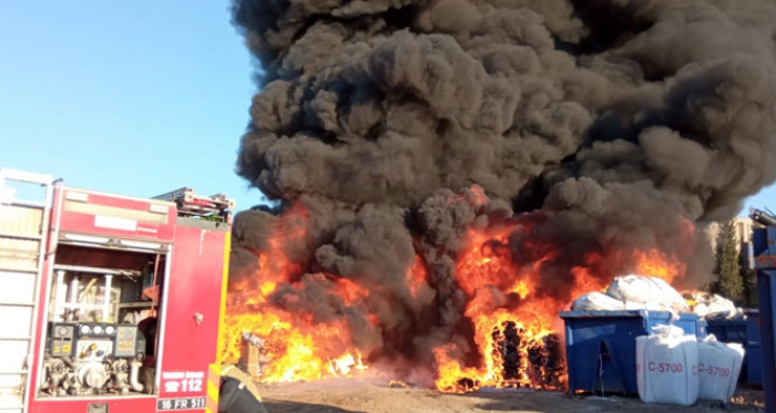 Bursa’nın merkez Osmangazi ilçesinde bulunan bir geri dönüşüm tesisinde yangın çıktı. Yangına çok sayıda itfaiye ekibi müdahale ediyor.