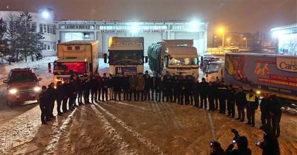 Erzurum Büyükşehir Belediyesi, deprem felaketiyle sarsılan Kahramanmaraş ve çevre illere yönelik yardımlarını sürdürüyor. Akşam saatlerinde Büyükşehir Belediyesi, iş insanları ve hayırsever vatandaşların yardımlarını içeren üçüncü yardım konvoyu da deprem bölgesi için yola çıktı.