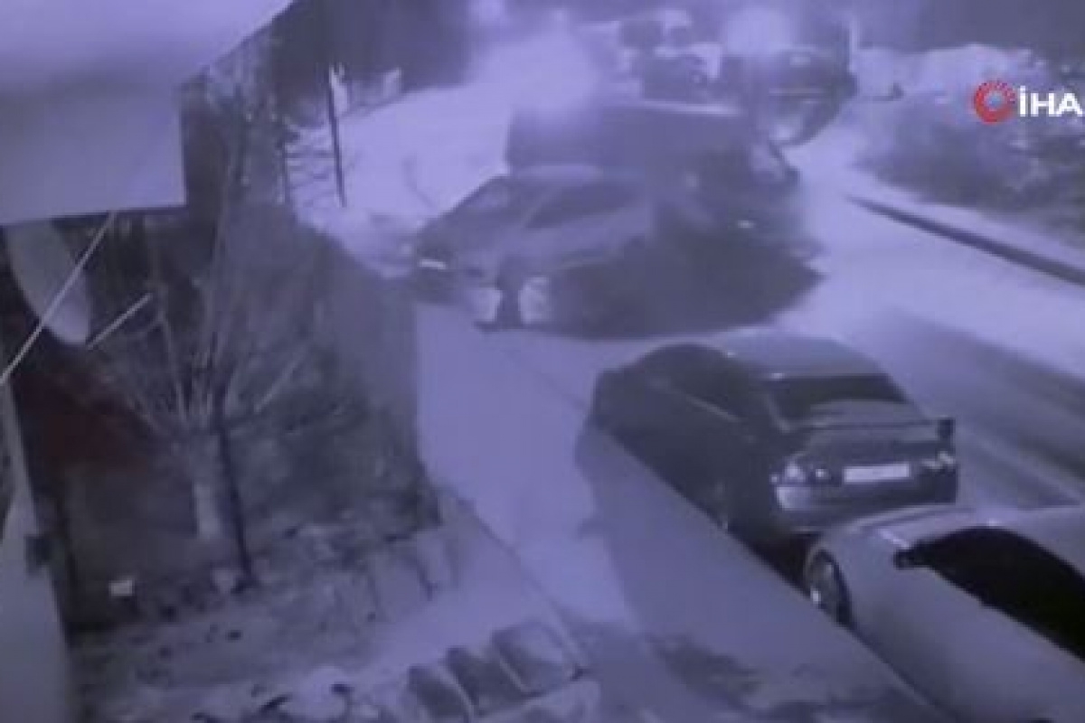 Bir panelvan araç, ilk kazada hasar alan park halindeki araca çarptı. Çarpmanın etkisiyle vatandaşlar sağa sola kaçışırken, bu sırada buzlu yolda kontrolden çıkan otomobil elektrik direğine çarptı. Kazada yaralanan olmazken, 4 araçta da hasar meydana geldi. Buz tutan virajda meydana gelen üç kaza da güvenlik kamerasına yansıdı.
