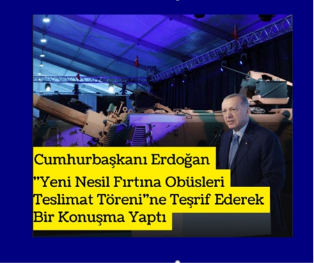 Cumhurbaşkanımız Sayın Erdoğan konuşmasında, teslimatı gerçekleşecek olan 6 adet yeni nesil Fırtına obüslerinin millette ve orduya hayırlı olmasını diledi.