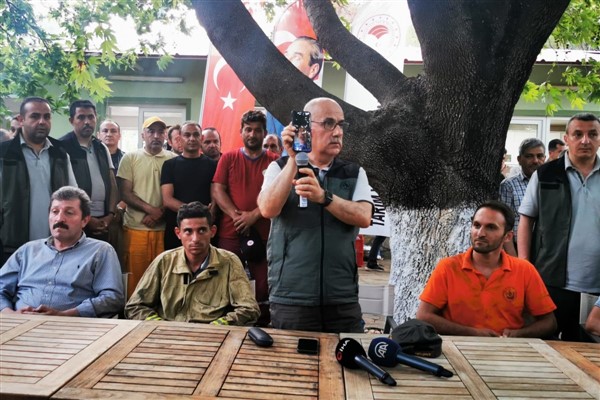 Orman işçilerine teşekkür eden Bakan Kirişci, “21 Haziran günü başlayan yangından dolayı bütün birimlerimiz teyakkuz haline geçmiş ve 8 dakika gibi kısa bir sürede gerekli çalışmalar başlatılmış ve an itibariyle de kontrol altına alınmıştır. An itibariyle de 1 helikopter, 40 arazöz, 7 dozer ve 760 personelimiz bu operasyonda aktif olarak görev almıştır. Daha sonra gelen destekler ile birlikte yoğun çaba sarf edilmiştir. Hamdolsun 68 saat gibi bir sürede sizlerin alın teri ve gayreti ile bu operasyon sonlandırmıştır. Dün ve bugün soğutma işlemlerinde çalışmalarımız yürütülmüştür. Özellikle her birinize gerek şahsın ve milletim adına şükranlarımı sunuyorum. İyi ki varsınız. Cumhurbaşkanımızın talimatları ile size ikramımız olacak. Çam sakızı çoban armağanı. Tekrar gayretleriniz için ayrıca teşekkür ediyorum” dedi.