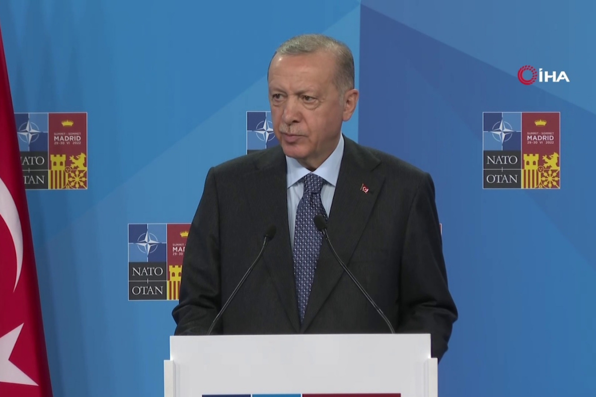 Cumhurbaşkanı Recep Tayyip Erdoğan, NATO Liderler Zirvesi’nin kapanış oturumunun ardından basın toplantısı düzenledi. Cumhurbaşkanı Erdoğan, "İttifakımızın Ukrayna'ya desteği tamdır. Tüm çabalarımız ateşkes içindir" dedi. Erdoğan, İsveç ve Finlandiya ile imzalanan mutabakat ile ilgili, "Elde edilmiş diplomatik bir zafer" ifadelerini kullandı.