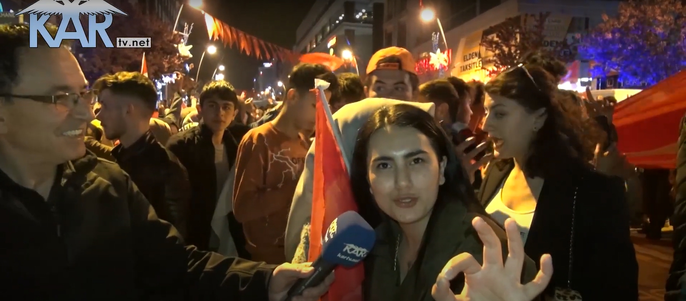 13. Cumhurbaşkanlığı seçiminin ikinci turunda Recep Tayyip Erdoğan'ın kazanması sonrası Erzurum sokaklara döküldü. Adeta bayram havasına dönen cadde'de vatandaşlar tekbir getirerek kutladılar. Bir grup gençte oynayarak kutladı. İşte o anlar...