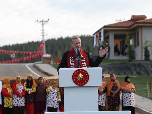 Cumhurbaşkanı Erdoğan, Gaziantep Nurdağı'nda Belpınar ile Mesthüyük Köyleri ve Kahramanmaraş Türkoğlu Özbek Köyü Köy Evleri Anahtar Teslim Töreni'nde yaptığı konuşmada, “Cumhuriyet tarihinin bu en büyük konut ve şehircilik seferberliğini, Allah’ın izniyle, alnımızın akıyla tamamlayacağız” dedi.