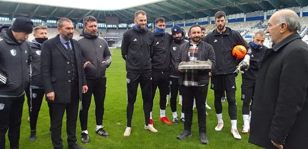 Teknik Heyet ve Futbolculara baklava ikram eden Özden, Çift Başlı Kartallara, Boluspor maçı öncesi başarı dileklerini iletti.