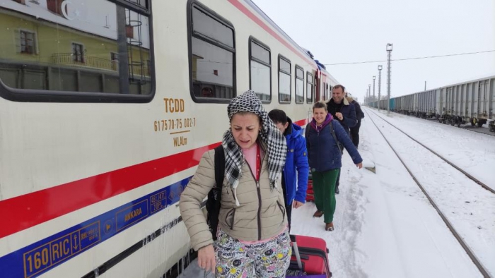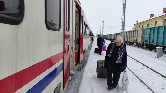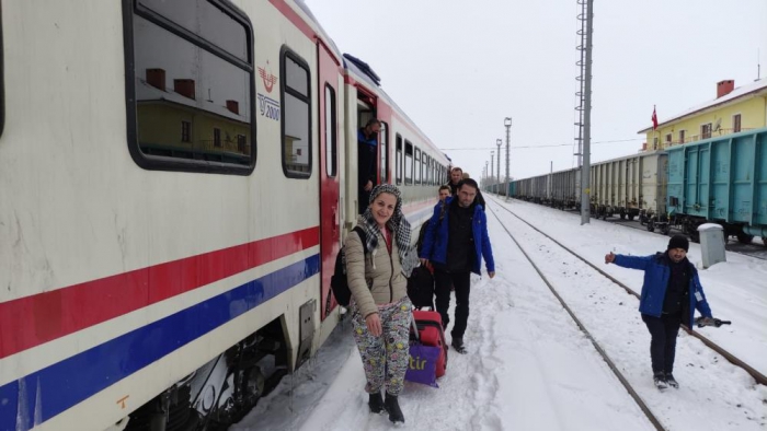 Yolculardan Recep Yılmaz, “15 saattir trenin içindeyiz. Yola çığ düşmüş. Tur otobüsleriyle Kars’a gidiyoruz” dedi.