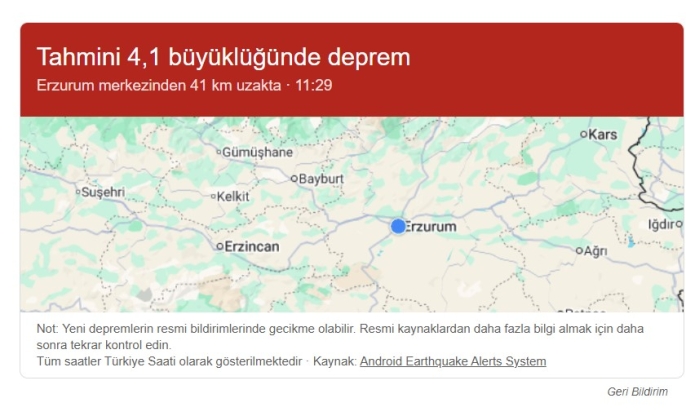 Android Earthquake Alerts System verileri ise depremin büyüklüğünü 4,1 olarak tahmin etmişti. Resmi kaynaklardan gelen güncel verilere göre büyüklük 4,4 olarak kayıtlara geçti.