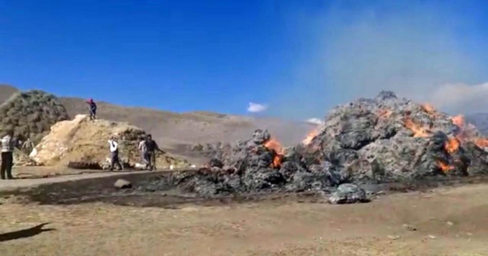 Mahalle Muhtarı Yüksel Duman ve bazı vatandaşlara ait yaklaşık 10 bin balya ot yanarak kül oldu. Çiftçilerin büyük emek vererek biçtiği otların yanarak kül olması ise vatandaşları derin üzüntüye boğdu.