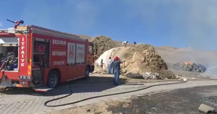 Erzurum’un Horasan ilçesine bağlı Mollaahmet Mahallesinde 10 bin balya ot yanarak kül oldu.