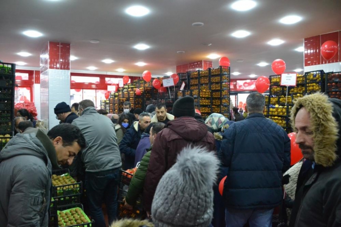 Erzurum’da açılışı yapılan manavda ilk gün dolayısıyla yapılan yüzde 50 oranındaki indirimler izdihama neden oldu.
