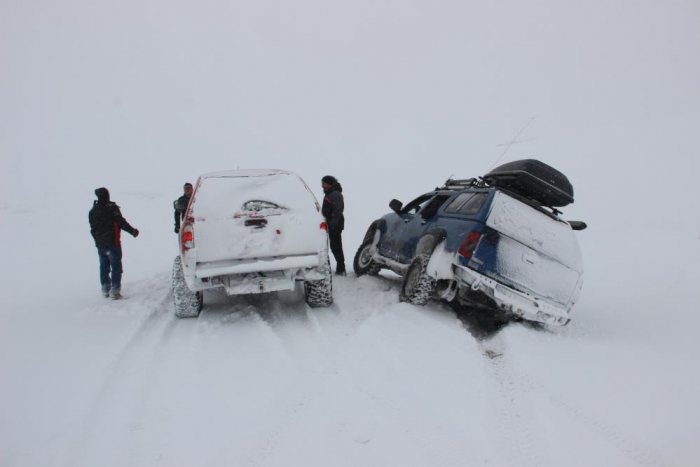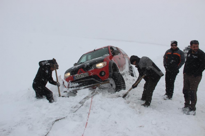 Yurt genelinde 3 gündür etkili olan kar yağışı sonrası Erzurum’da yüzlerce mahalleye ulaşım sağlanamıyor. Köy çocuklarına bot, mont ve eldiven götürmek için yola çıkan Macera Off-Road ekipleri ise Pasinler ilçesine bağlı Başören Mahallesine gittikleri sırada defalarca kara saplandı. Araçlar halat ve küreklerle uzun uğraşlar sonucu çıkartılsa da ekipler ilerlemekte zorluk çekti.