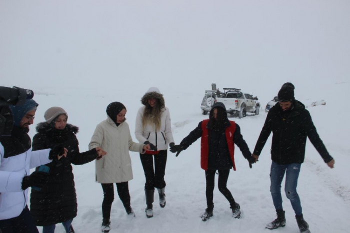 Gündüz saatlerinde havanın eksi 15 dereceleri gördüğü Erzurum’da yolda kalan bir grup genç ise araçlar çıkartıldığında soğuk havaya daha fazla dayanamayarak çözümü halay çekmekte buldu. Dakikalarca kar üzerinde halay çeken gençler araçlarının kurtarılmasının ardından tekrar yola koyuldular. Araçları battığı için üşümeye başladıklarını ifade eden gençler zorluktan eğlence çıkarttıklarını söyledi.