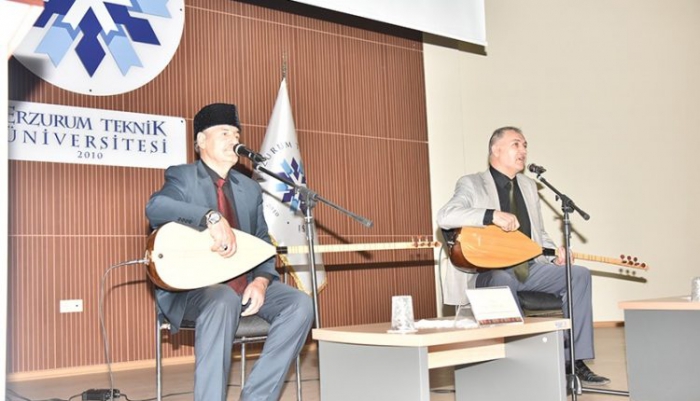 Erzurum Teknik Üniversitesi Edebiyat Fakültesi Türk Dili ve Edebiyatı Bölümü Türkoloji kulübünün organize ettiği “Aşıklık Geleneği” adlı dinletide Aşık Sıtkı Eminoğlu ve Aşık Selami Yağar, ETÜ İktisadi ve İdari Bilimler-Edebiyat Fakültesi konferans salonunda bir araya gelen Türkü severlere keyifli anlar yaşattılar.