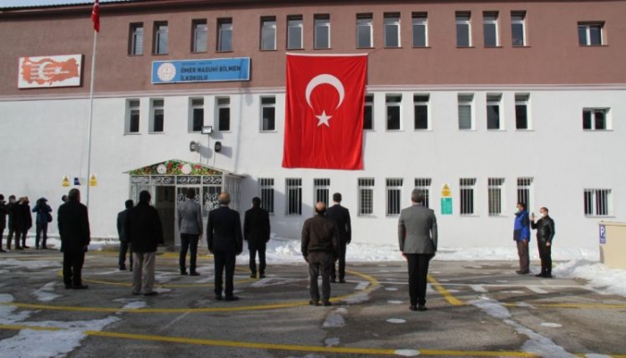 Erzurum İl Milli Eğitim Müdürü Salih Kaygusuz’un da katıldığı törende Yakutiye İlçesi Ömer Nasuhi Bilmen İlkokulu bahçesinde okul yönetimi ile birlikte düzenlenen İstiklal Marşı okundu.