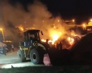 Yangında yaralanma olmazken çok sayıda balya ot yanarak kül oldu.