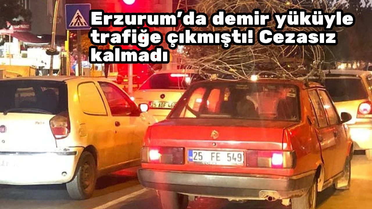 Erzurum’un Aziziye İlçesi'nde bulunan Milli Egemenlik Caddesi güzergâhında seyreden bir otomobil sürücüsünün, inşaat demiri yığını ile trafiğe çıkması cezasız kalmadı.