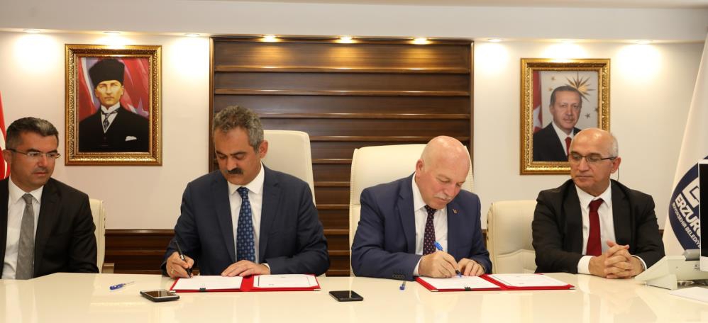 Milli Eğitim Bakanı Mahmut Özer, Erzurum Büyükşehir Belediyesi’nde gerçekleşen protokol imza töreninde yaptığı açıklamada, “Bakanlık olarak nitelikli eleman yetiştirmek ve gençlerin meslek sahibi olması için her türlü adımı atmaktayız” dedi. “Büyükşehir Belediye Başkanımız Mehmet Sekmen’de Erzurum'da hiçbir sınırlama olmaksızın ayda mesleki kayıt yaptıran gençlere 500 lira burs vermeyi taahhüt etti” diyen Bakan Özer, şöyle devam etti: “Erzurum'da mesleki eğitim merkezine kayıt yaptıran 5 bin genç var ve aylık 1700 lira destek veriliyordu. Şimdi kayıt yaptıranlar belediyemizin de katkısıyla 2 bin 220 lira alacak. Erzurum'da mesleki eğitimin güçlenmesi adına önemli bir adım ve bu konuda Başkanımız Mehmet Sekmen'e teşekkür ediyorum. Mesleki eğitim merkezlerini güçlendirmek için çok önemli adımlar atıyoruz. Erzurum'a normalde protokol için gelmemiştik ama il değerlendirme toplantısı ve Köy Yaşam Merkezi’nin açılışı için gelmiştik. Ancak bugün her zaman Erzurum'da eğitimin gönüllü bir paydası olan Erzurum Büyükşehir Belediye Başkanımız Mehmet Sekmen de 'Bu sürecin parçası olayım' diyerek önemli katkıda bulundu. Başkanımıza çok teşekkür ediyorum.”