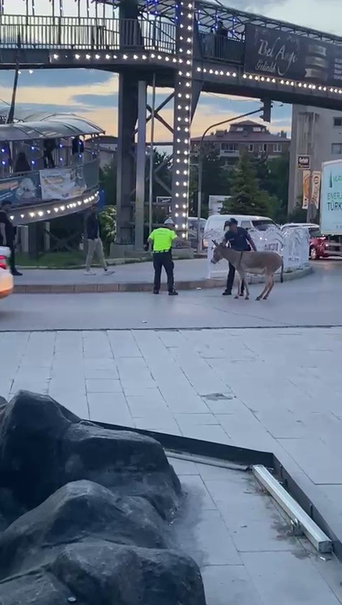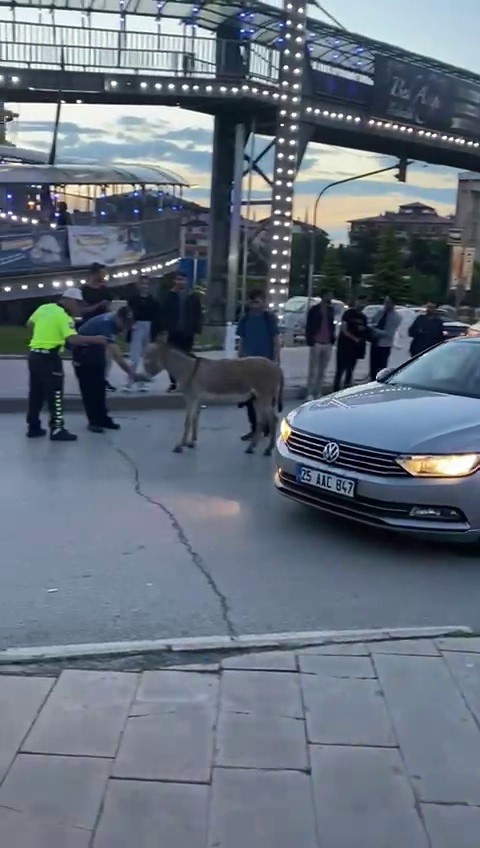Erzurum Atatürk Üniversitesi Kavşağında trafik ortasında başıboş bekleyen eşeği gören vatandaşlar durumu polise bildirdi. Ekiplerin çabası üzerine yoldan çekilmeyen eşek, trafiğin aksamasına neden oldu. Uzun uğraşlar sonucu trafik polisi tarafından, yol ortasında inatla bekleyen eşek kaldırıma çıkarıldı. İnatçı eşeğin halleri ise izleyenleri güldürdü.
