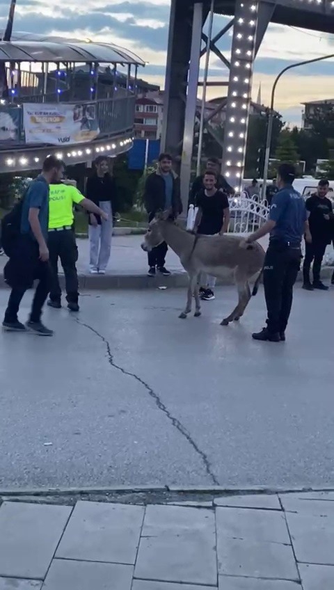Erzurum’da başıboş gezen bir eşek trafiği altüst etti. Polis ekiplerini alarma geçiren eşek, ekiplerin yoğun çabası üzerine yol ortasından kaldırıma çıkarılabildi. Eşeğin yolda inatla beklemesi ise izleyenleri güldürdü.