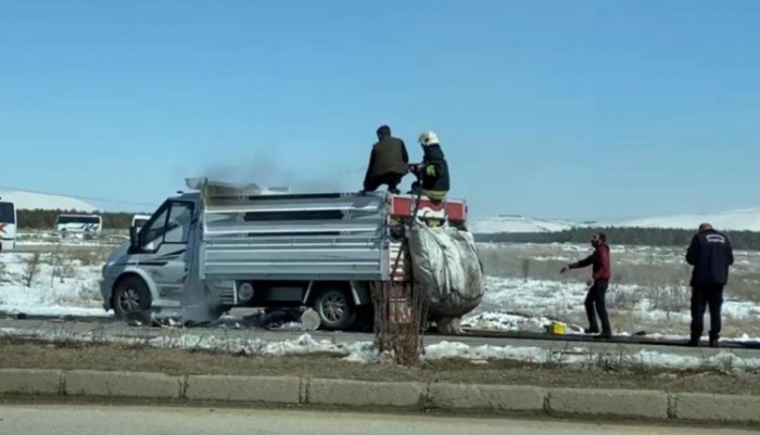 Erzurum’un Aziziye ilçesinde hareket halindeki kağıt yüklü kamyonet seyir halindeyken aniden alev aldı. Olay yerine gelen itfaiye tarafından yangın söndürüldü.