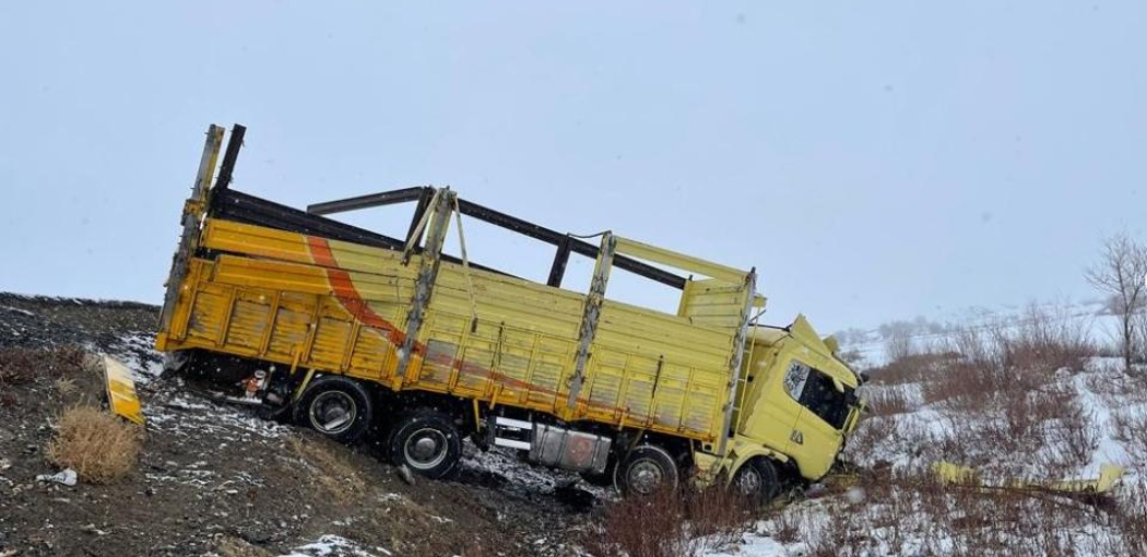 Alınan bilgilere göre, bugün sabah saatlerinde kaza Erzurum’un Horasan ilçesine bağlı Horasan-Kars karayolu mevkiinde meydana geldi. Salih Çakmak idaresindeki kamyonet yoldaki gizli buzlanma nedeniyle sürücüsünün direksiyon hakimiyetini kaybetmesi sonucu yoldan çıkarak şarampole uçtu.